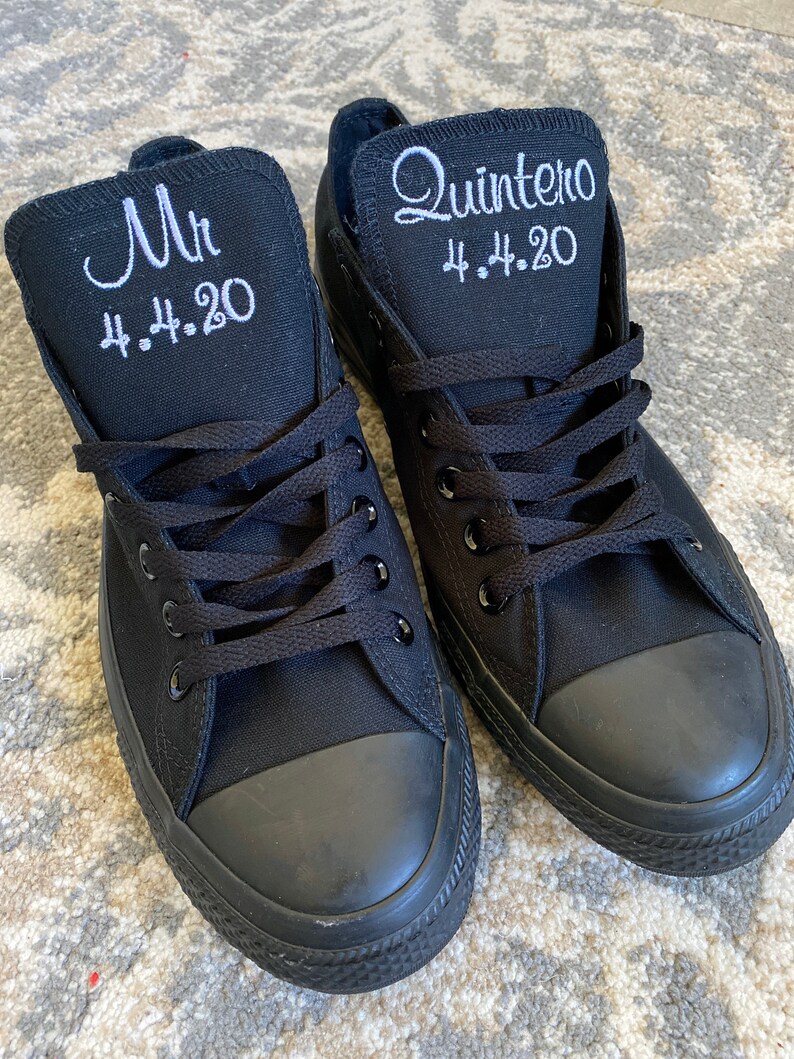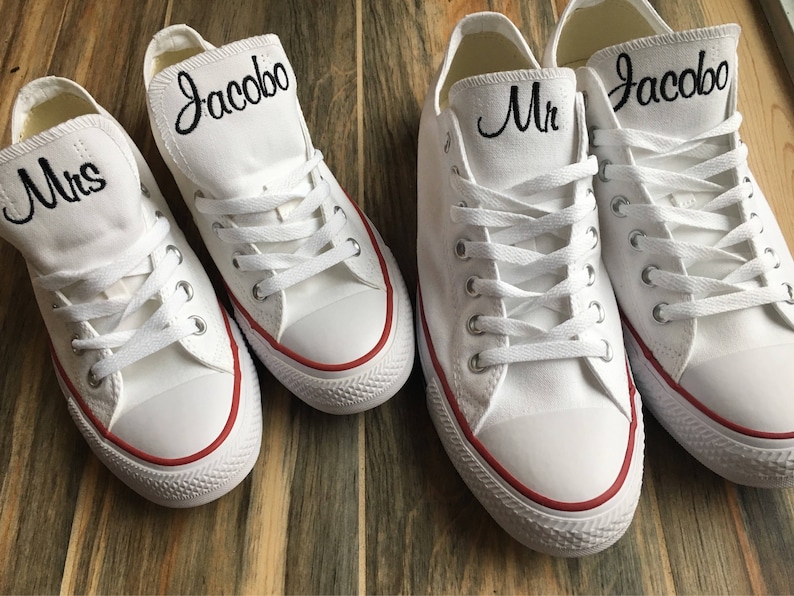Embroidered Converse Wedding looking for custom wedding converse? explore wedding sneakers for the bride, groom, bridesmaids and groomsmen or customize your own bridal shoes with. customise a pair of chucks for your wedding, honeymoon and every celebration in between. check out our embroidered converse wedding selection for the very best in unique or custom, handmade pieces from our tie.. Embroidered Converse Wedding.
